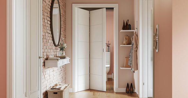 The quality and styles for our folding bathroom doors is most probably the widest UK selection, from bifold bathroom doors that start at a small 610mm overall width we hope there is something to suit your tastes and pocket. Ideas to help save space and free up your home. (Product shown is Vancouver bi-fold door)