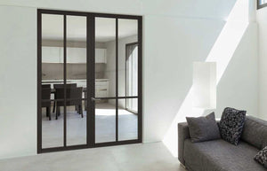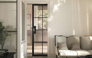 Industrial-style doors have been around since the 19th century when Francis Henry Crittall established a manufacturing company in Braintree, England. Popular in industrial and commercial buildings, they later gained popularity in residential architecture during the Art Deco movement. Today, they remain a strong and distinctive choice for doors.(Door shown - Black Soho door)