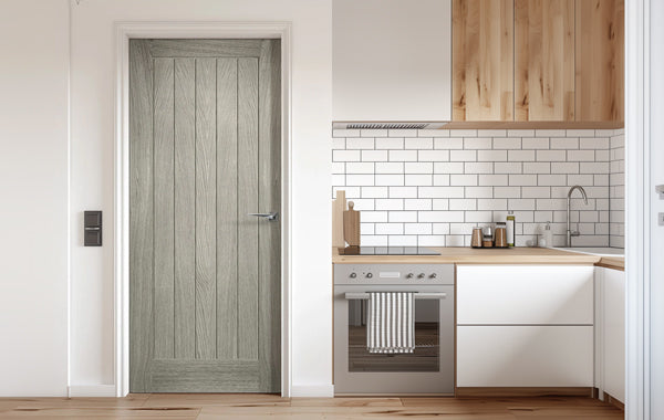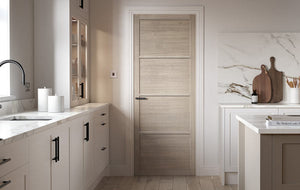 Is there anything more timeless than a wooden door? Here at DirectDoors you can choose from an endless selection of solid kitchen hardwood doors. The ever-sought-after oak kitchen doors and walnut kitchen doors, as well as many others, await you in a full variety of designs. (Product shown is Soho White Oak door)