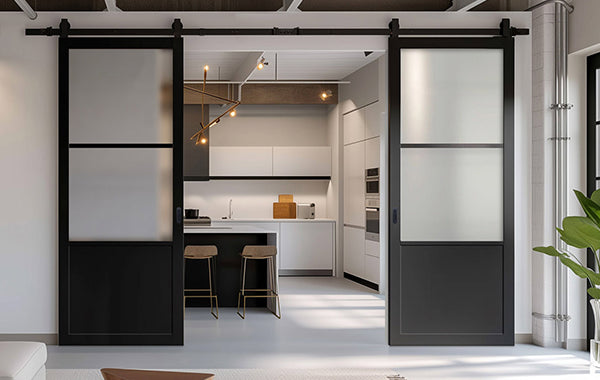 Save space and bring natural sunlight into your kitchen with our sliding kitchen doors. Whether it's barn style track top-mounted doors, sleek stainless steel track sliding doors, or sliding-folding kitchen doors, we offer all of these and many more. Plus, we have a wide range of styles to satisfy even the most demanding tastes.(Product shown is Berkley Black sliding door)