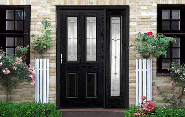 A beautiful range of coloured composite doors with many colour options including our modern black front door offerings and another 13 colour options to choose from for every door in this selection. 10-14 day delivery schedule across the whole range. (Product shown is black Malton door with sidelights)