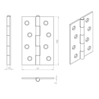 6x Ares Loft Style Matt Black Hinges - 102x67mm