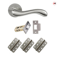 Bari Door Lever Handle Pack - 3 Radius Cornered Hinges - Satin Finish