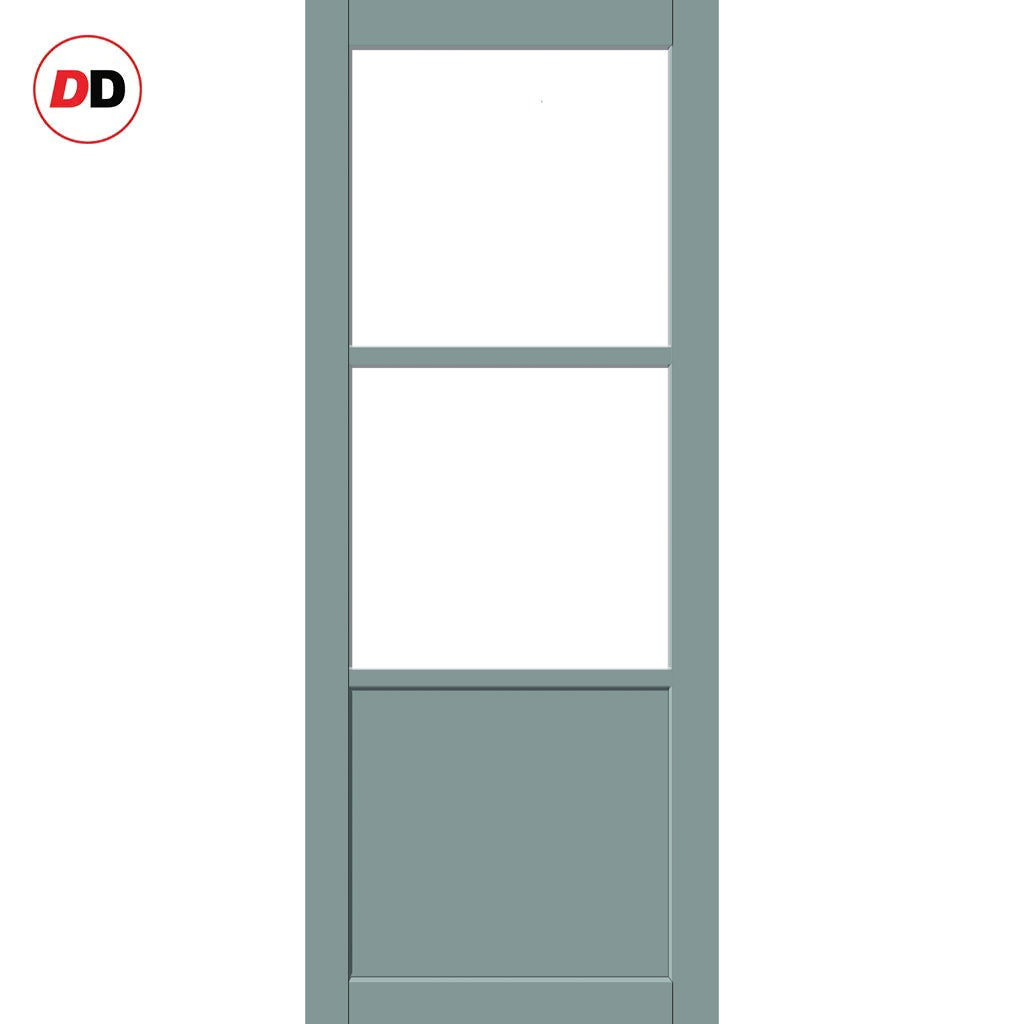 Berkley 2 Pane 1 Panel Solid Wood Internal Door UK Made DD6309 - Tinted Glass - Eco-Urban® Sage Sky Premium Primed
