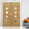 Bespoke Pamplona Oak Flush Internal Door Pair - Clear Glass - Prefinished