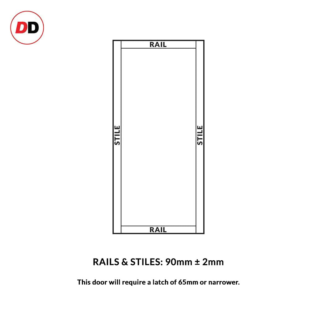 Please note, the 90mm rails require no more than a 65mm latch to be fitted, do not drill any more than 70mm from the edge of the door.
