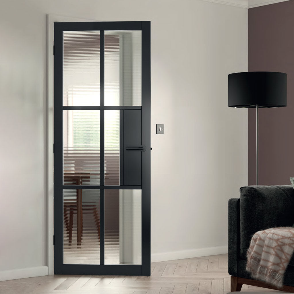 Civic Black Industrial Door with Reeded Glass - Prefinished