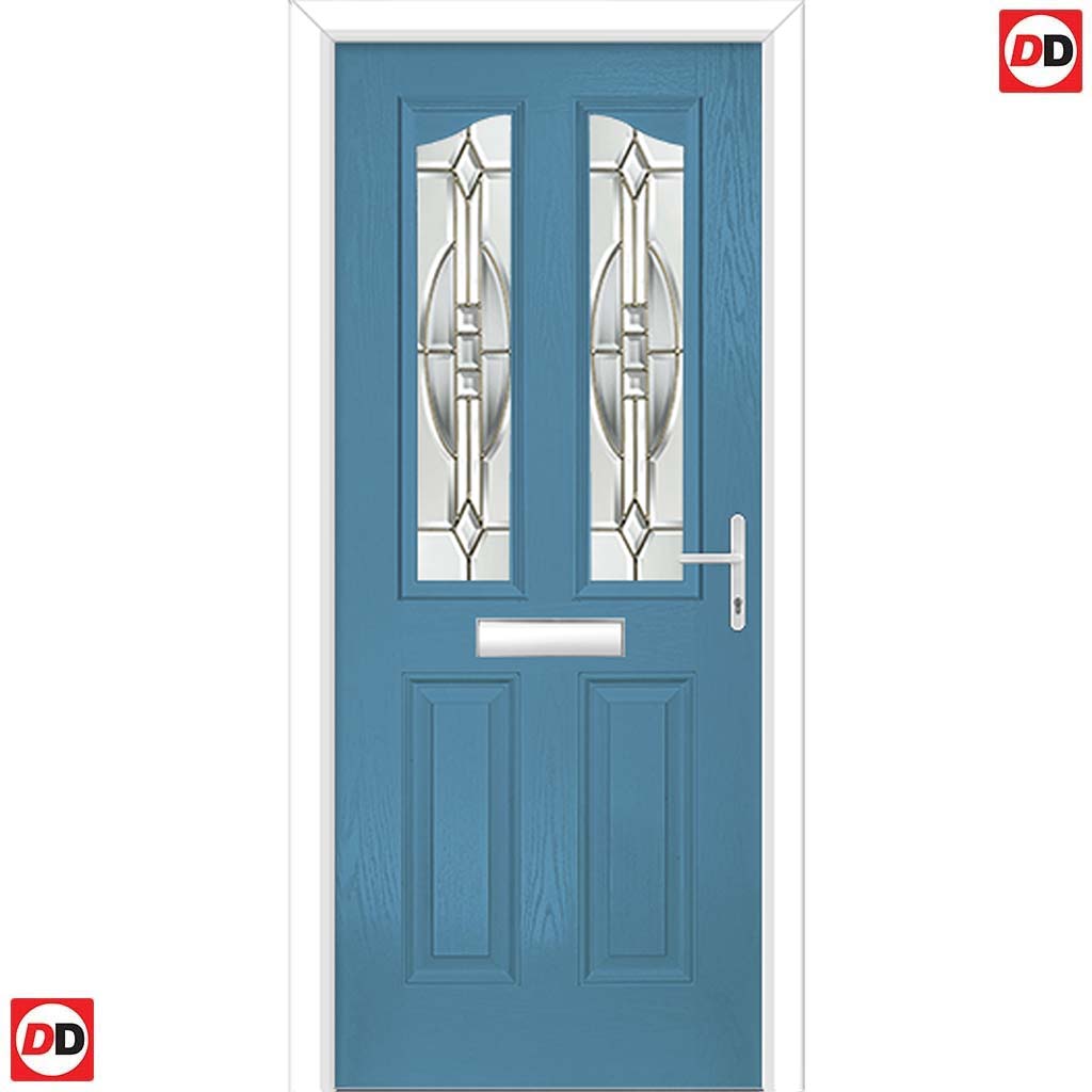 Premium Composite Front Door Set - Aprilla 2 Mirage Glass - Shown in Pastel Blue