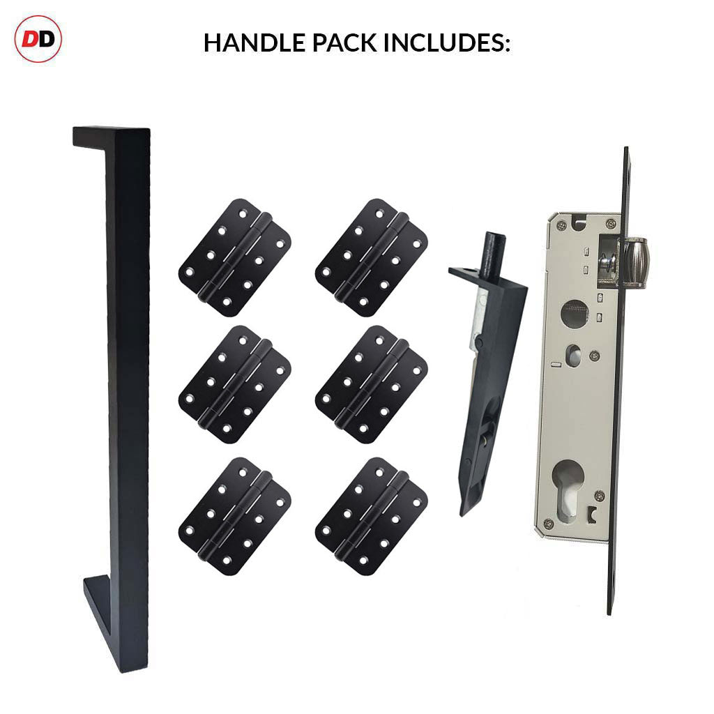 Concord 280mm Back to Back Double Door Pull Handle Pack - 6 Radius Cornered Hinges - Matt Black