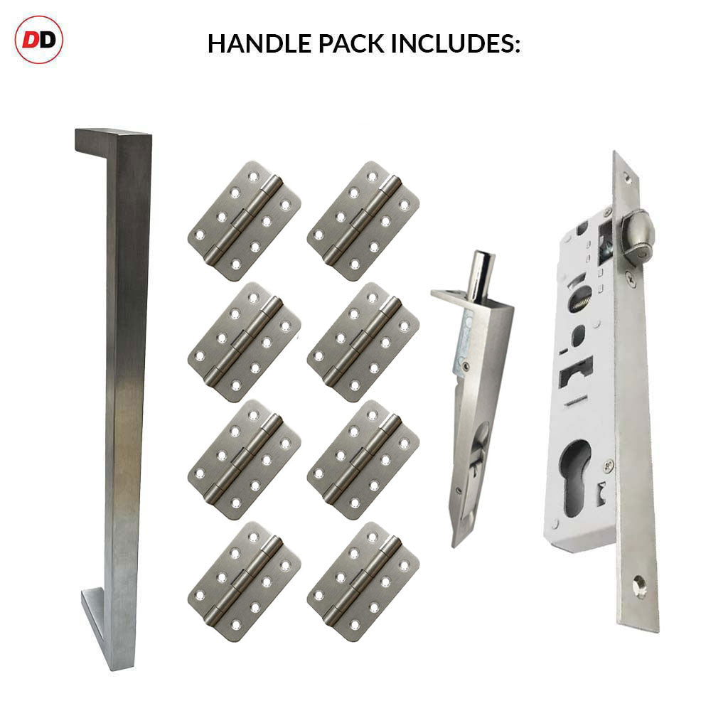 Concord 280mm Back to Back Double Door Pull Handle Pack - 8 Radius Cornered Hinges - Satin Stainless Steel