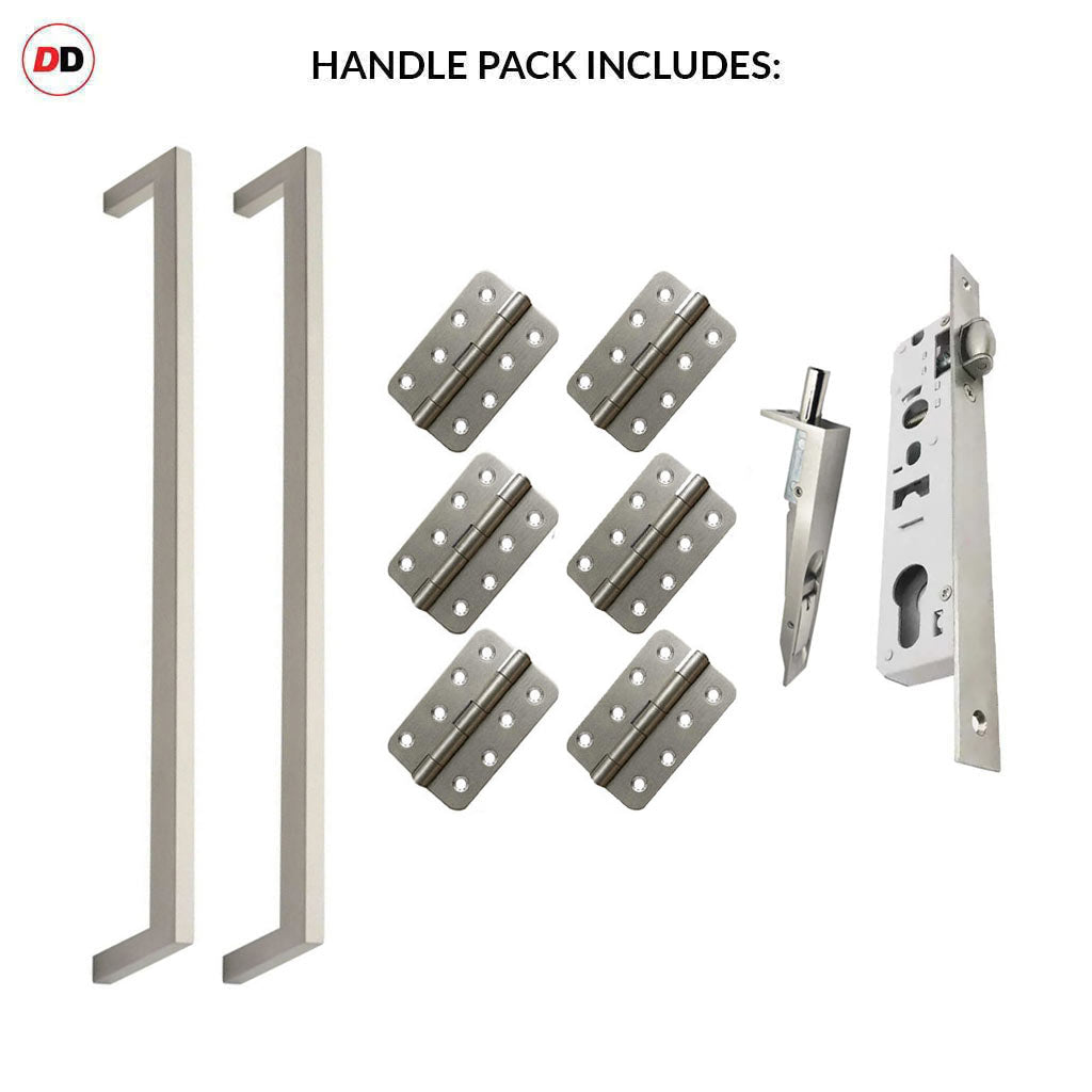 Concord XL 400mm Back to Back Double Door Pull Handle Pack - 6 Radius Cornered Hinges - Satin Stainless Steel