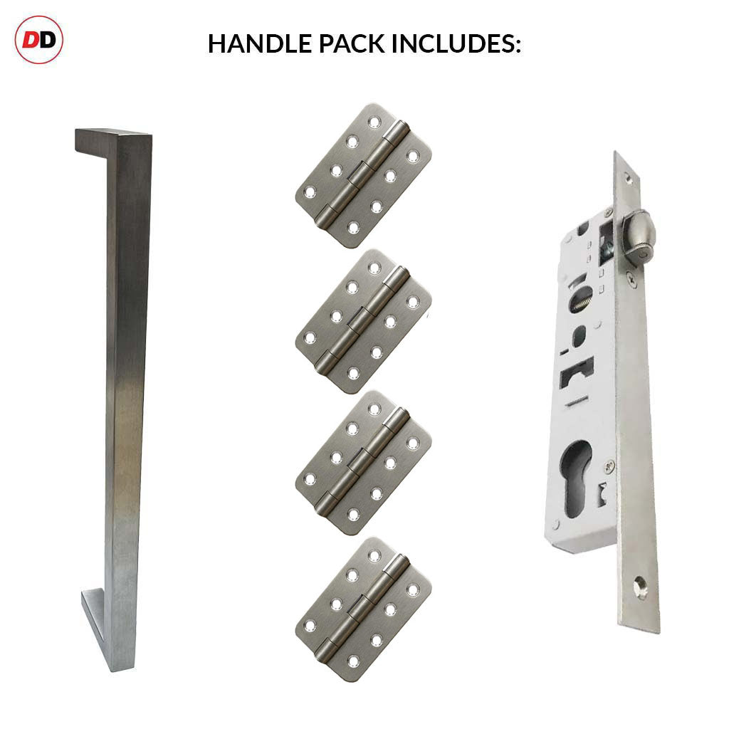 Concord 280mm Back to Back Pull Handle Pack - 4 Radius Cornered Hinges - Satin Stainless Steel
