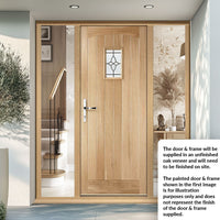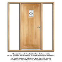 The beautiful Cottage Oak Door with Bevel Tri Glazing and frame set with Two Unglazed Side Screens is shown without decoration, the door has an engineered core construction for greater strength and stability.
