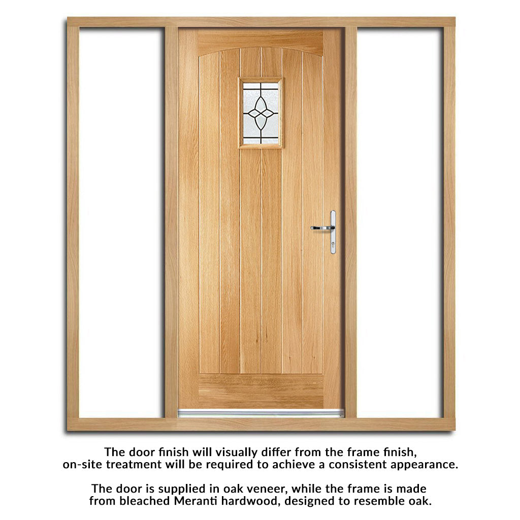 Cottage Exterior Oak Front Door and Frame Set - Bevel Tri Glazing - Two Unglazed Side Screens