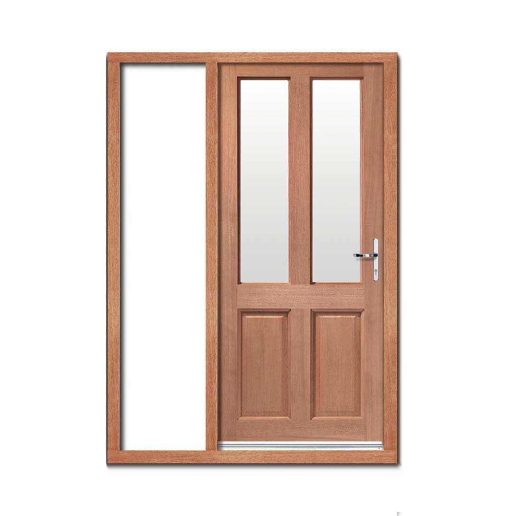 Malton External Hardwood Front Door and Frame Set - Frosted Double Glazing - One Unglazed Side Screen