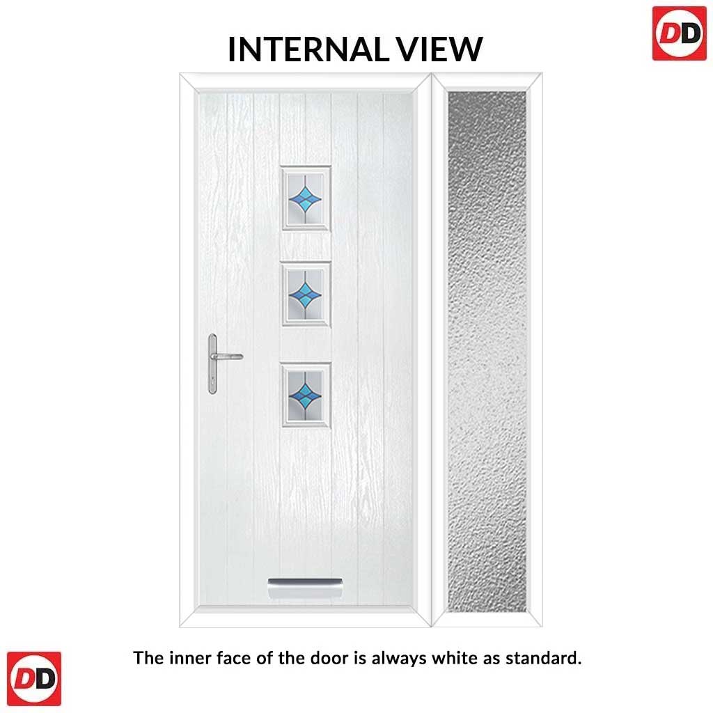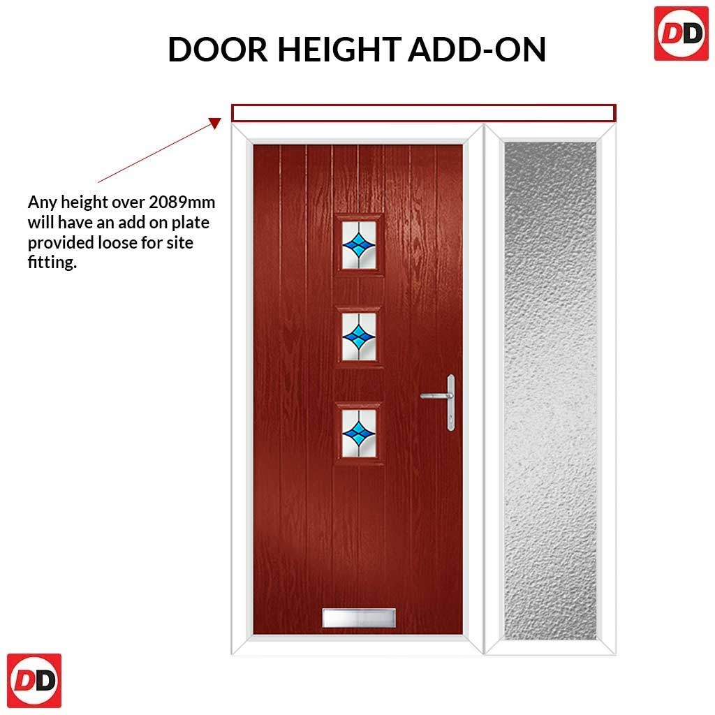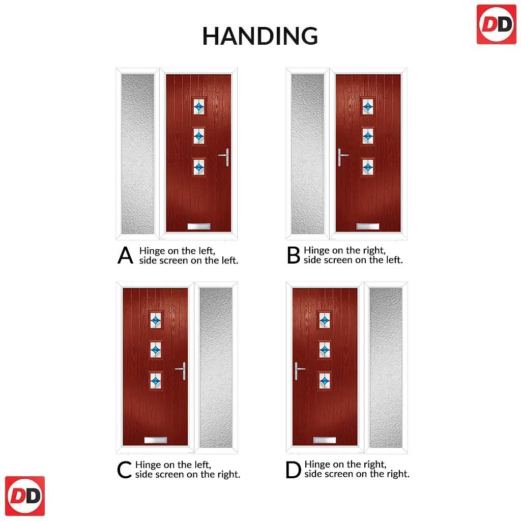 Cottage Style Aruba 3 Composite Front Door Set with Single Side Screen - Central Laptev Blue Glass - Shown in Red
