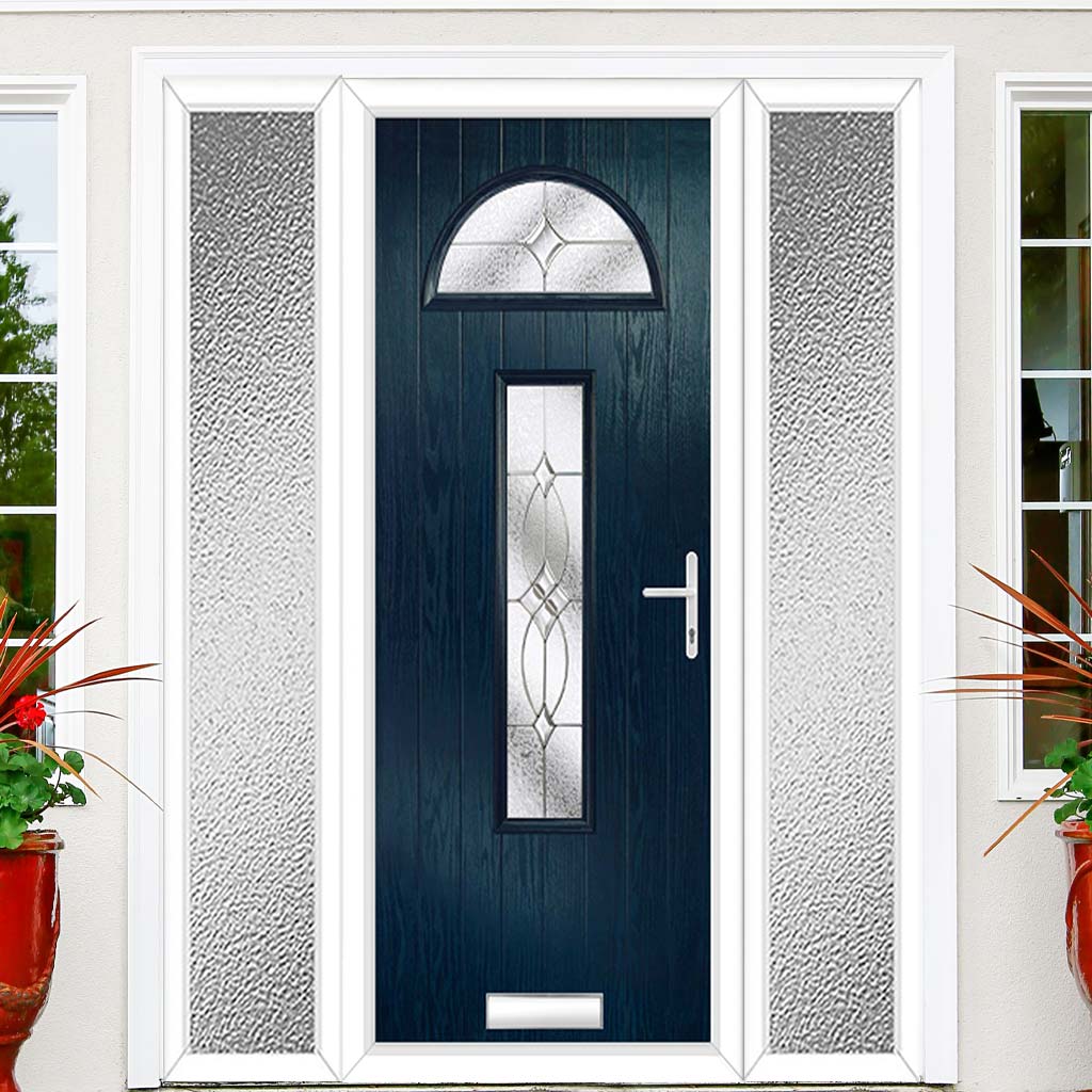 Cottage Style Belize 2 Composite Front Door Set with Double Side Screen - Flair Glass - Shown in Blue