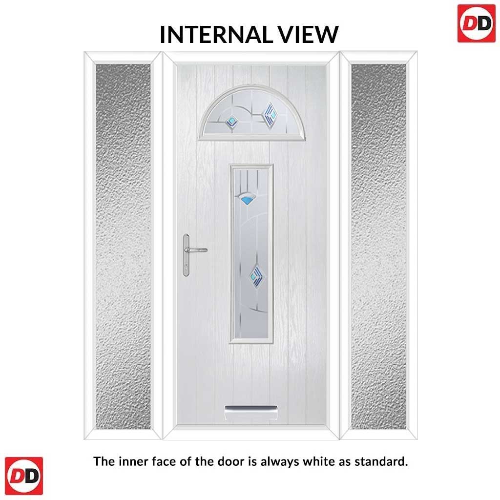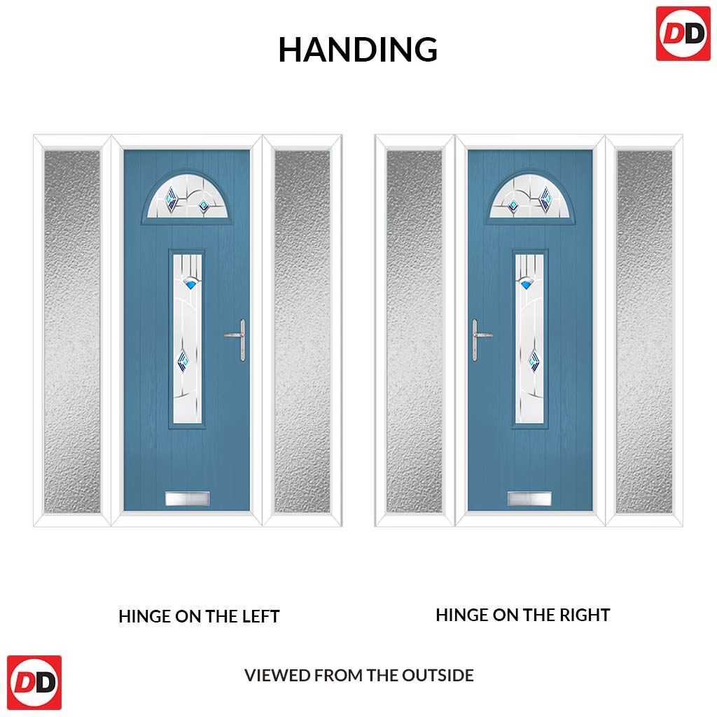 Cottage Style Belize 2 Composite Front Door Set with Double Side Screen - Murano Blue Glass - Shown in Pastel Blue