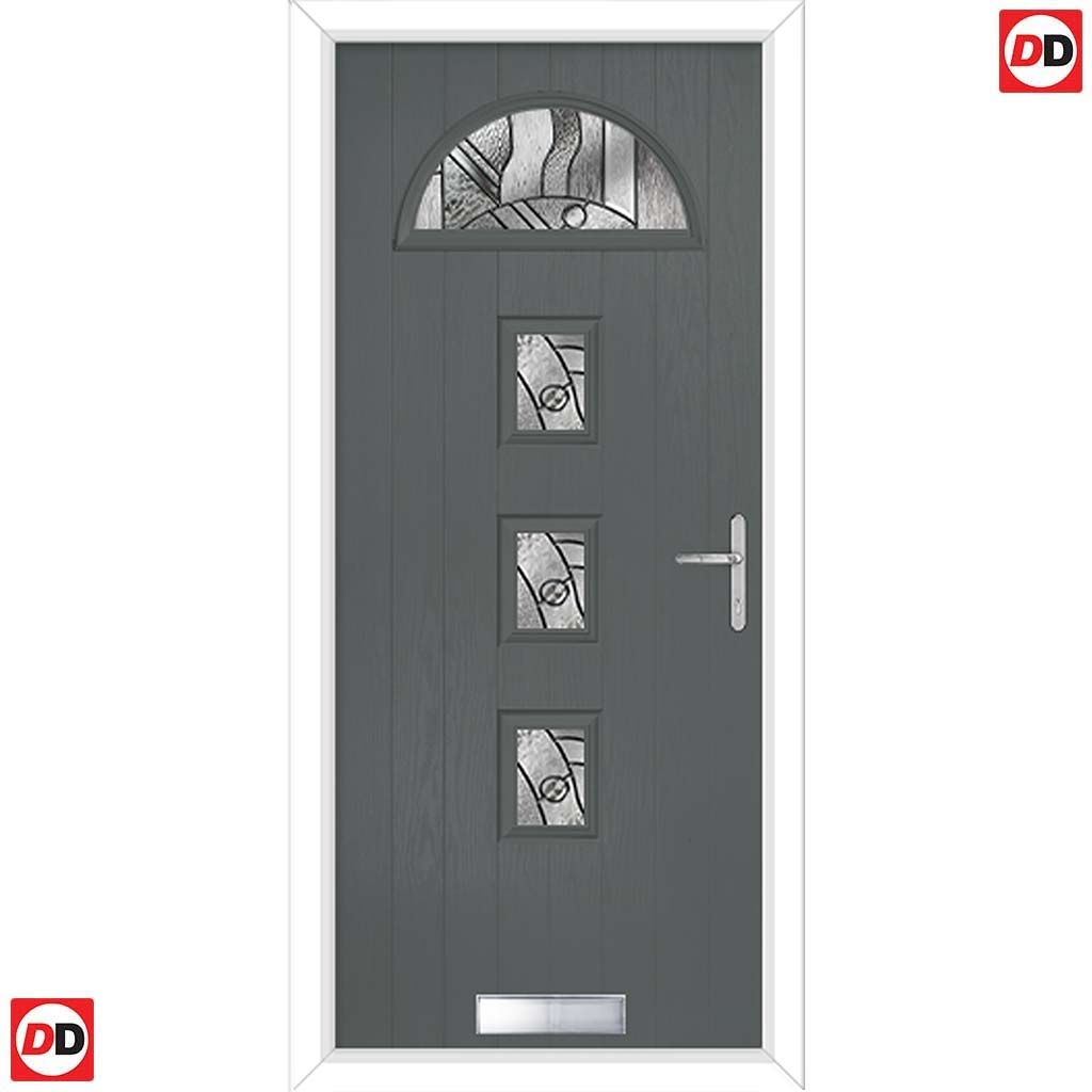 Cottage Style Belize 4 Composite Front Door Set with Abstract Glass - Shown in Mouse Grey