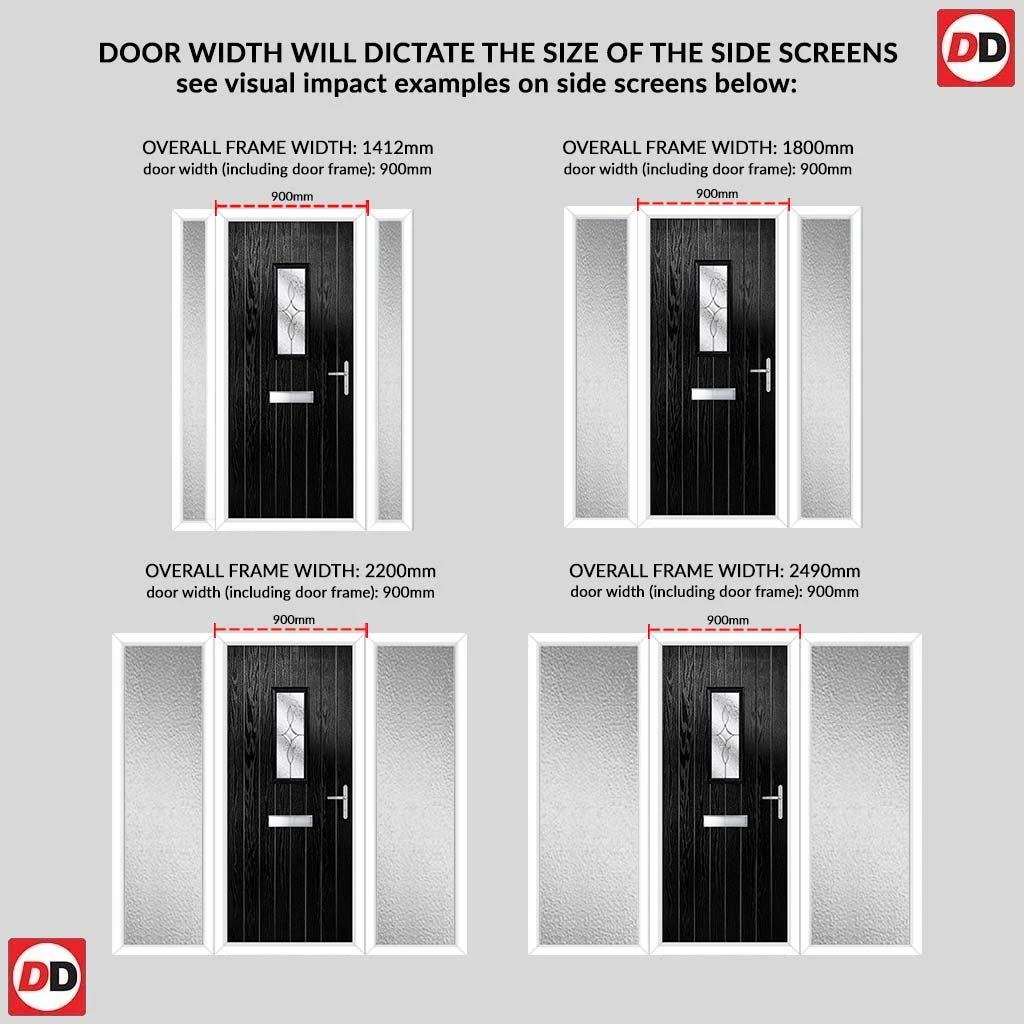 Cottage Style Catalina 1 Composite Front Door Set with Double Side Screen - Flair Glass - Shown in Black