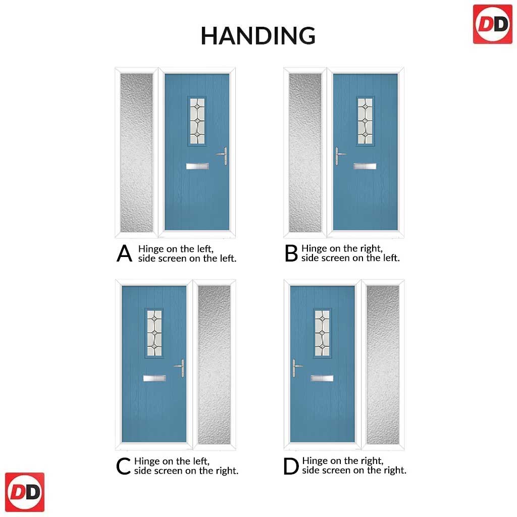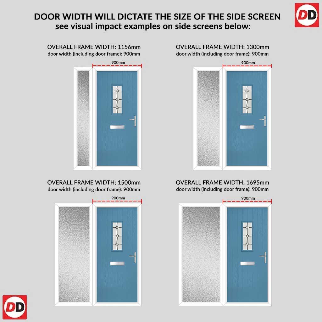 Cottage Style Catalina 1 Composite Front Door Set with Single Side Screen - Mirage Glass - Shown in Pastel Blue