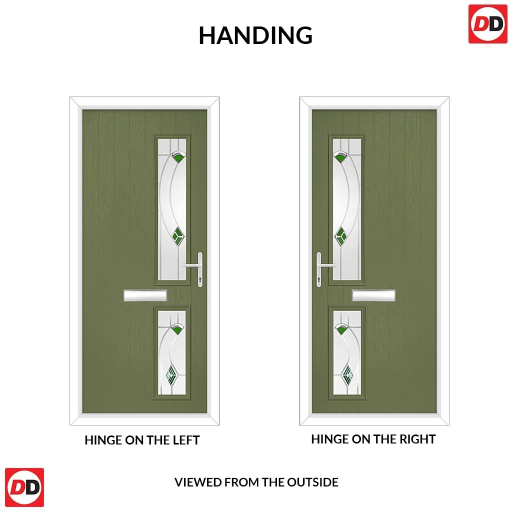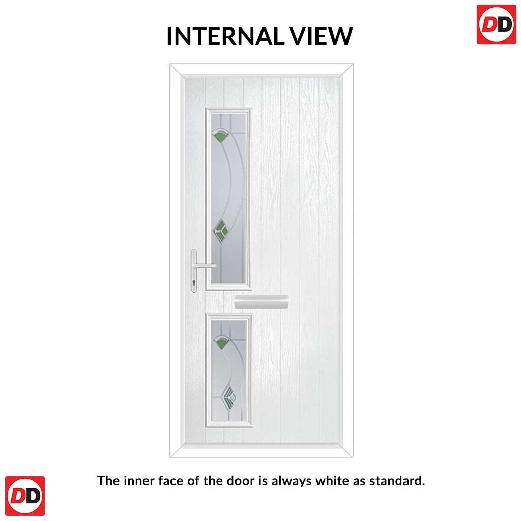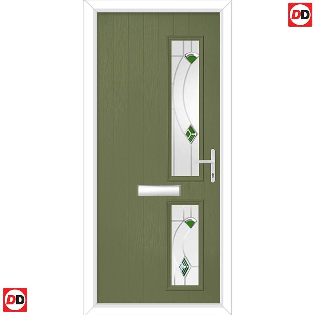 Cottage Style Debonaire 2 Composite Front Door Set with Hnd Kupang Green Glass - Shown in Reed Green