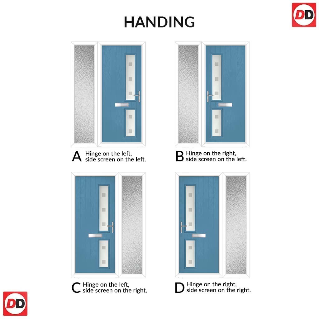 Cottage Style Debonaire 2 Composite Front Door Set with Single Side Screen - Hnd Sandblast Ellie Glass - Shown in Pastel Blue