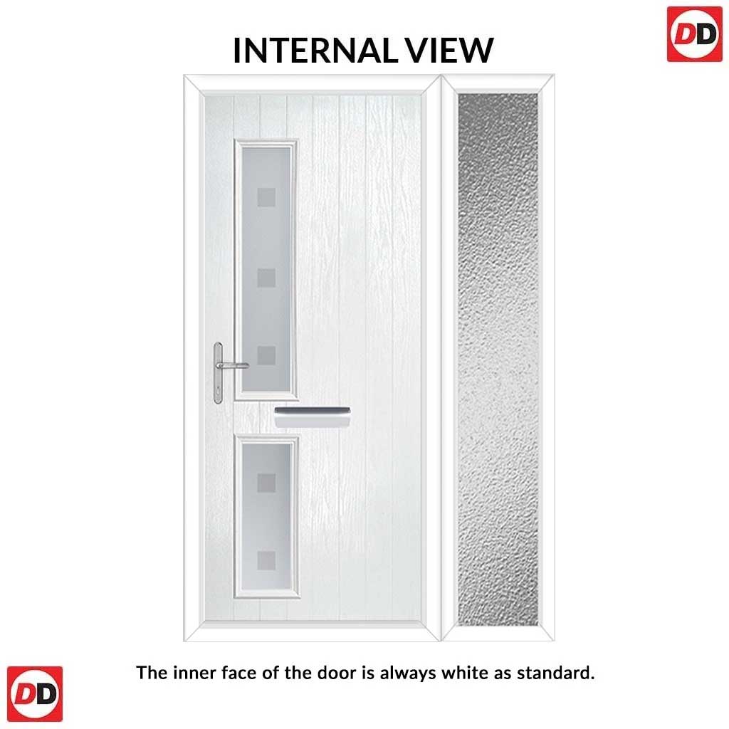 Note: For external prehung composite doors with glass. All glazed doors will have an obscure Stippolyte glass on the inside for privacy but could be changed to clear, costs may vary.