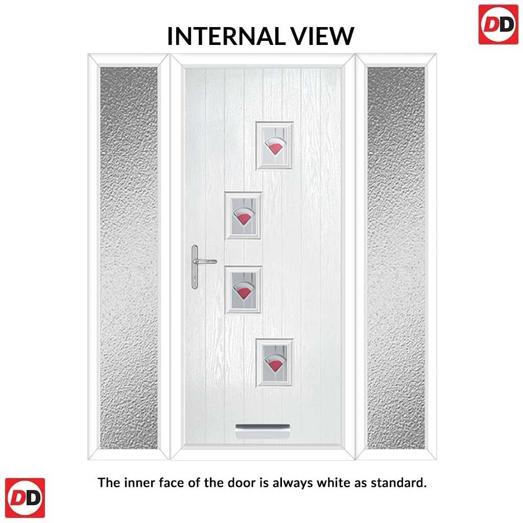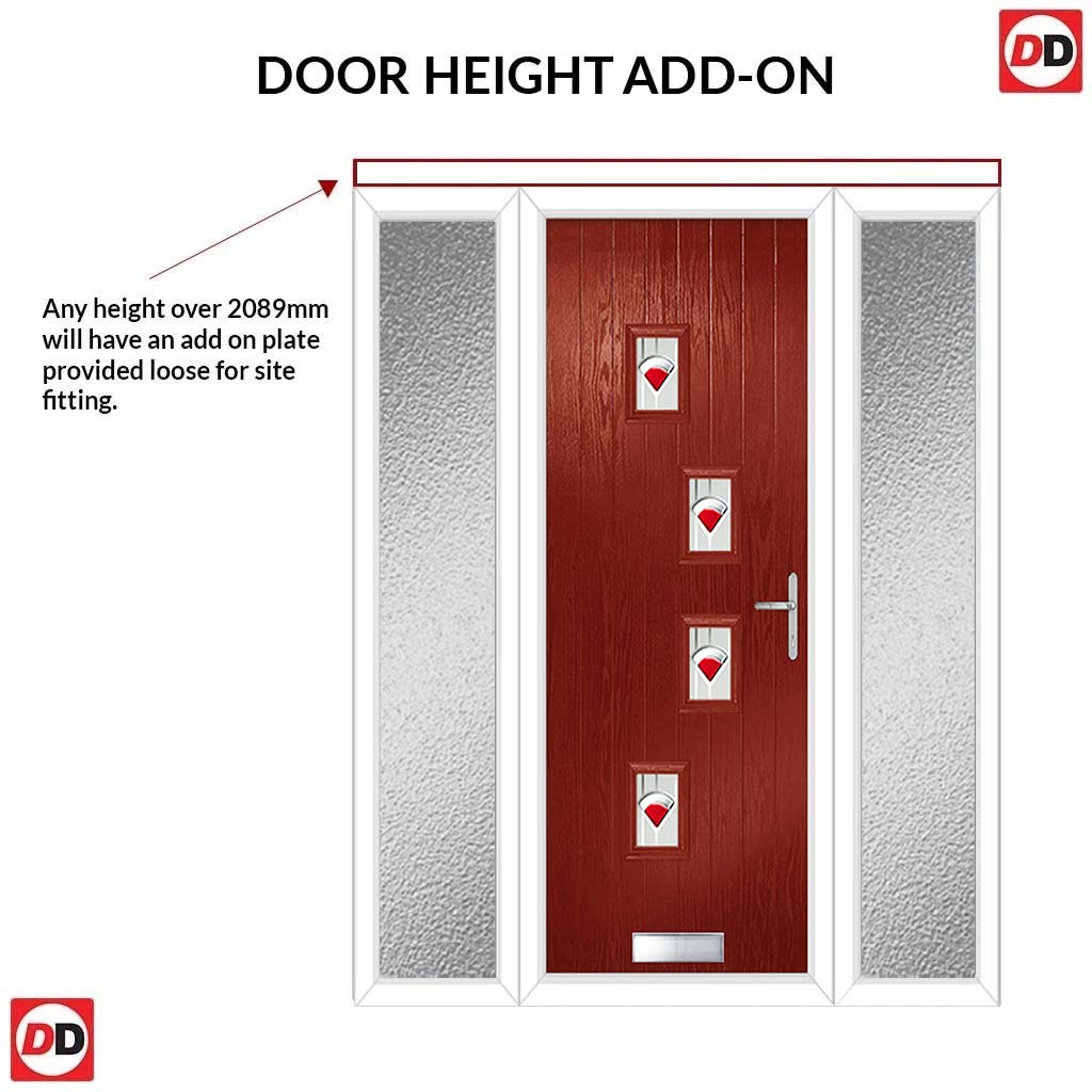 Cottage Style Doretti 4 Composite Front Door Set with Double Side Screen - Hnd Murano Red Glass - Shown in Red
