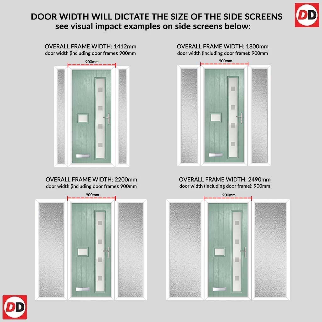 Cottage Style Jowett 2 Composite Front Door Set with Double Side Screen - Hnd Ellie Glass - Shown in Chartwell Green