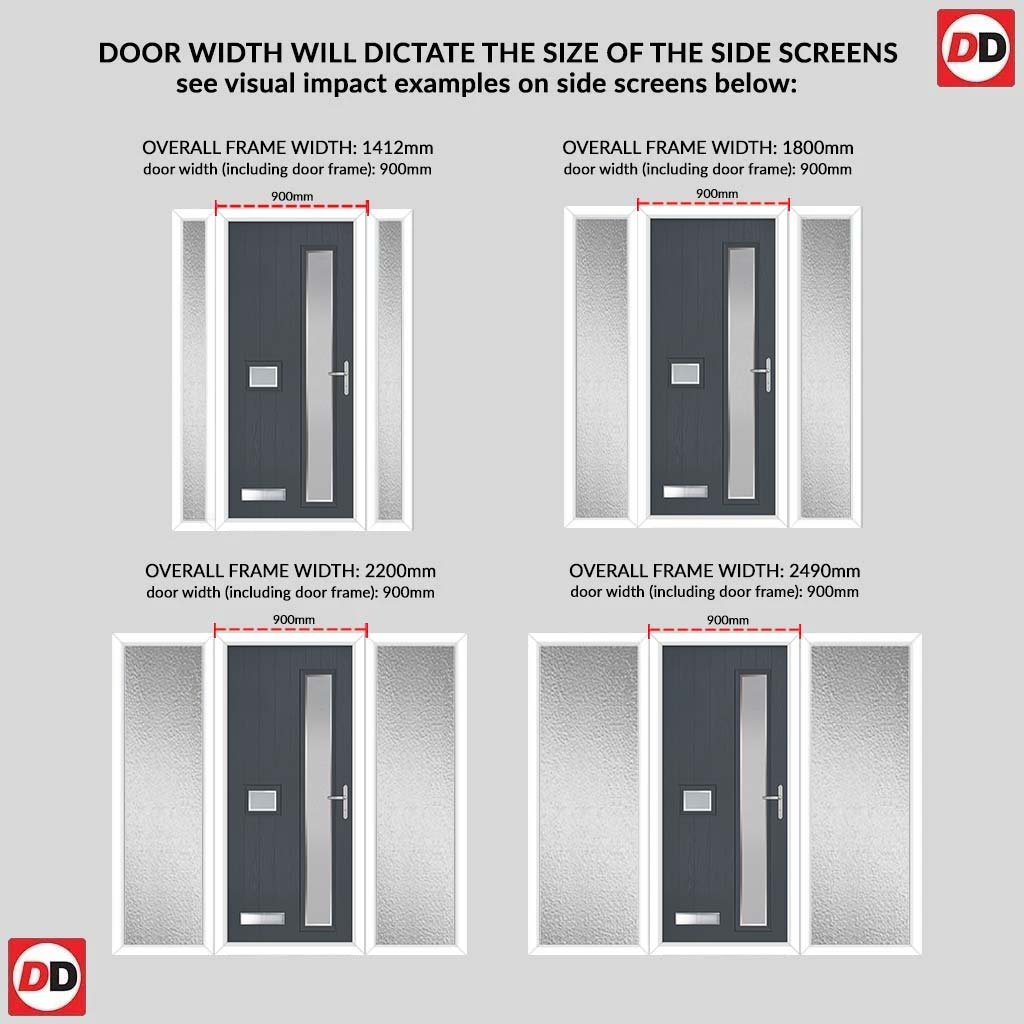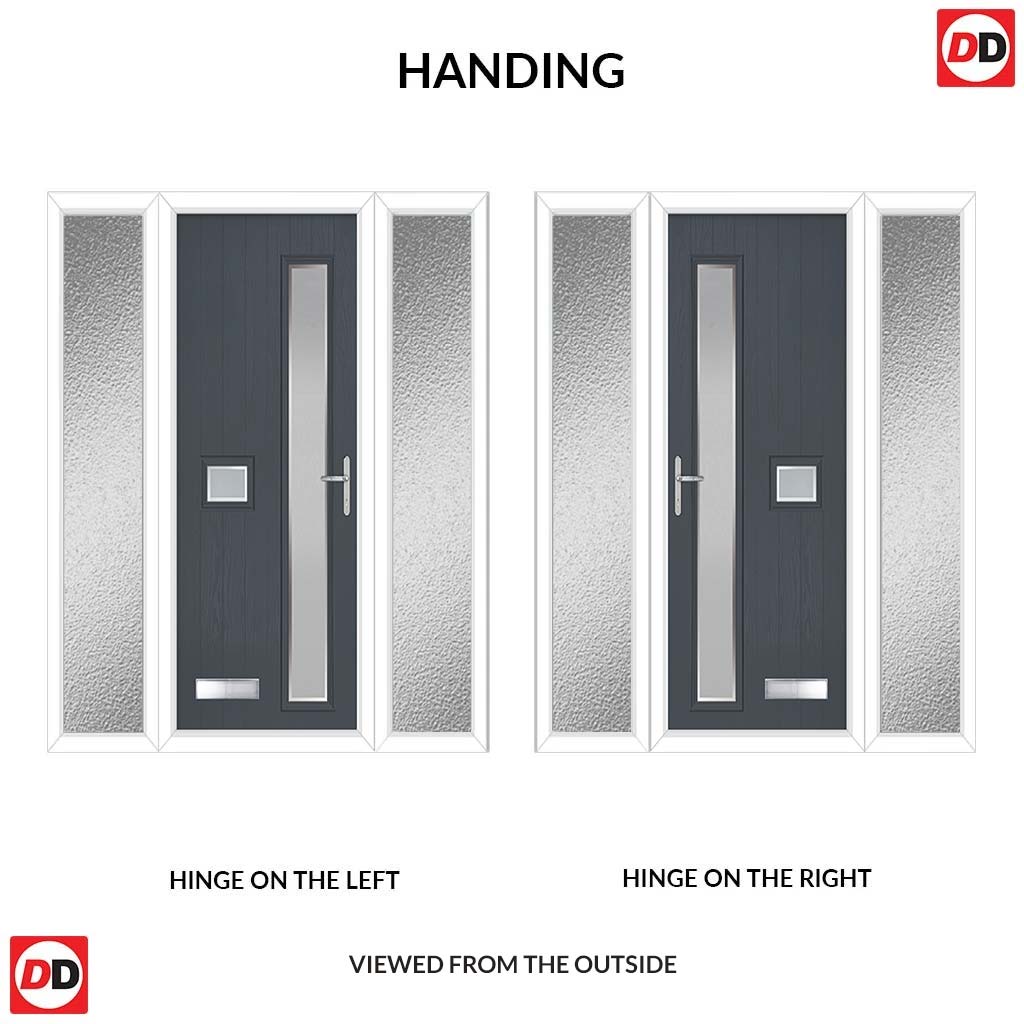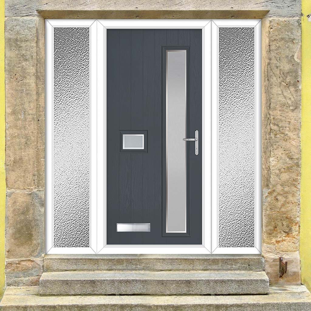 Cottage Style Jowett 2 Composite Front Door Set with Double Side Screen - Hnd Ice Edge Glass - Shown in Slate Grey