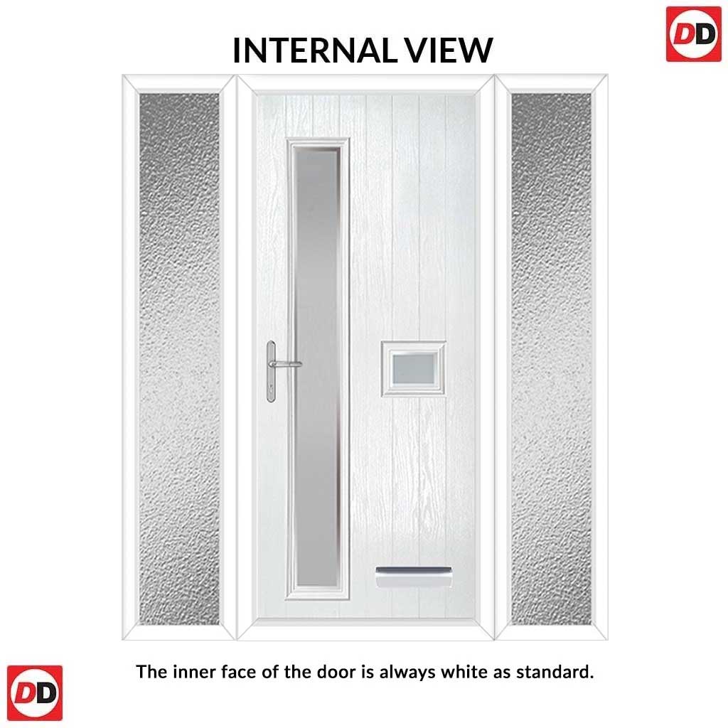 Note: For external prehung composite doors with glass. All glazed doors will have an obscure Stippolyte glass on the inside for privacy but could be changed to clear, costs may vary.
