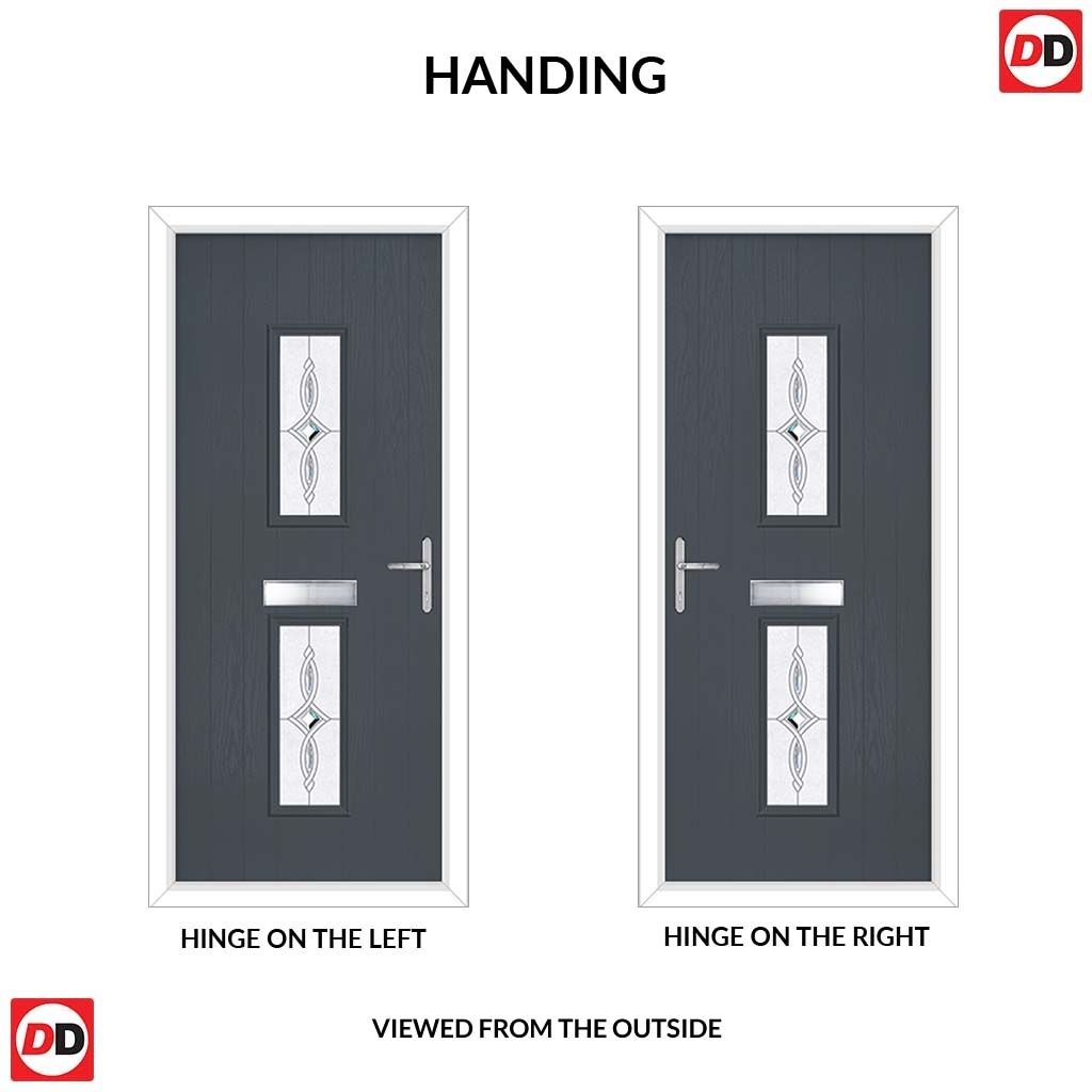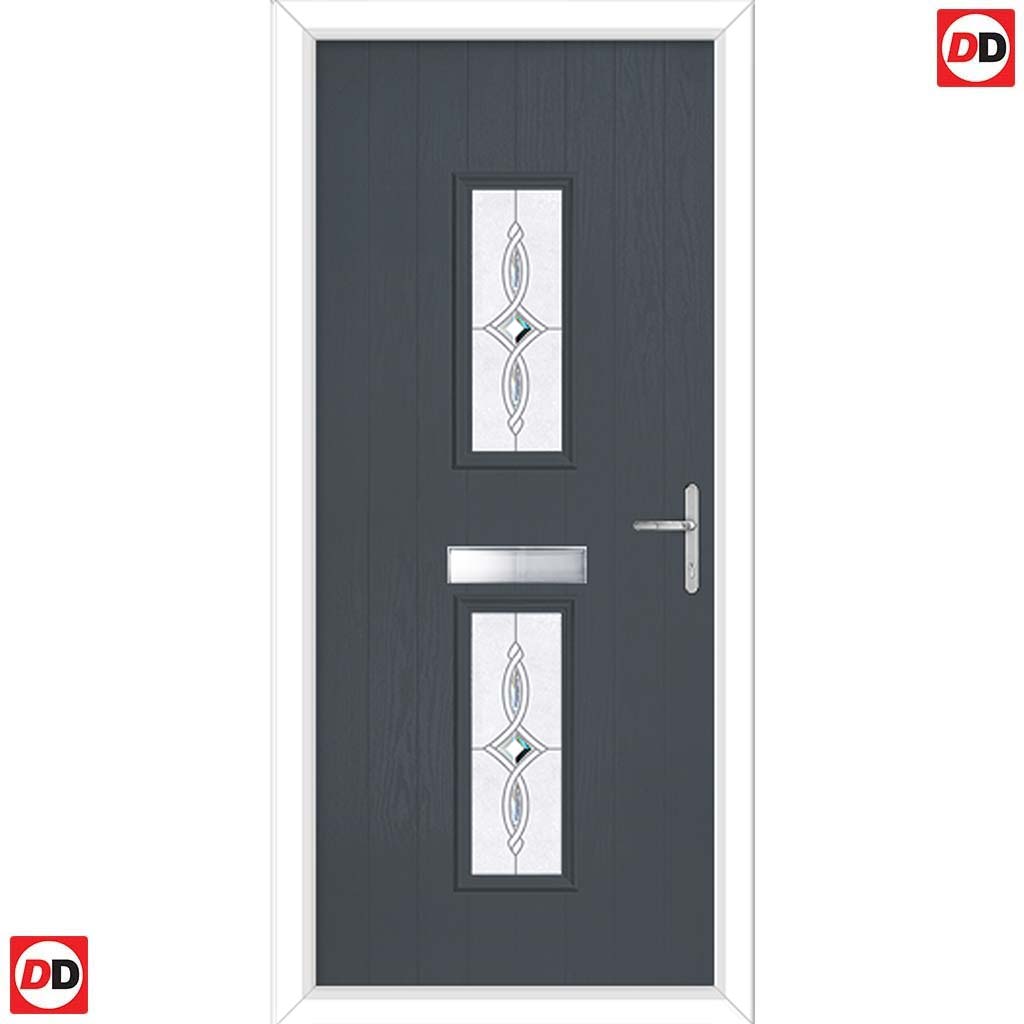 Cottage Style Seville 2 Composite Front Door Set with Pusan Glass - Shown in Slate Grey