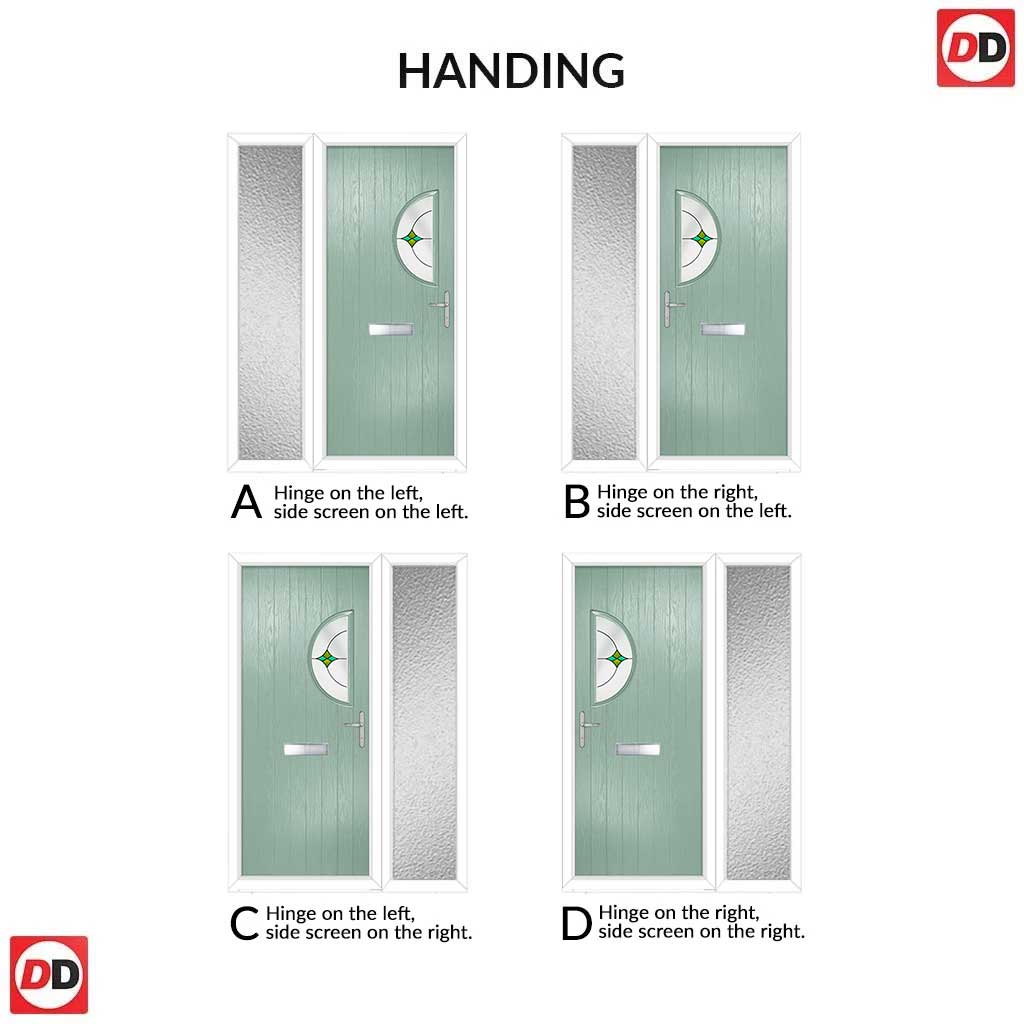 Cottage Style Shelby 1 Composite Front Door Set with Single Side Screen - Hnd Laptev Green Glass - Shown in Chartwell Green