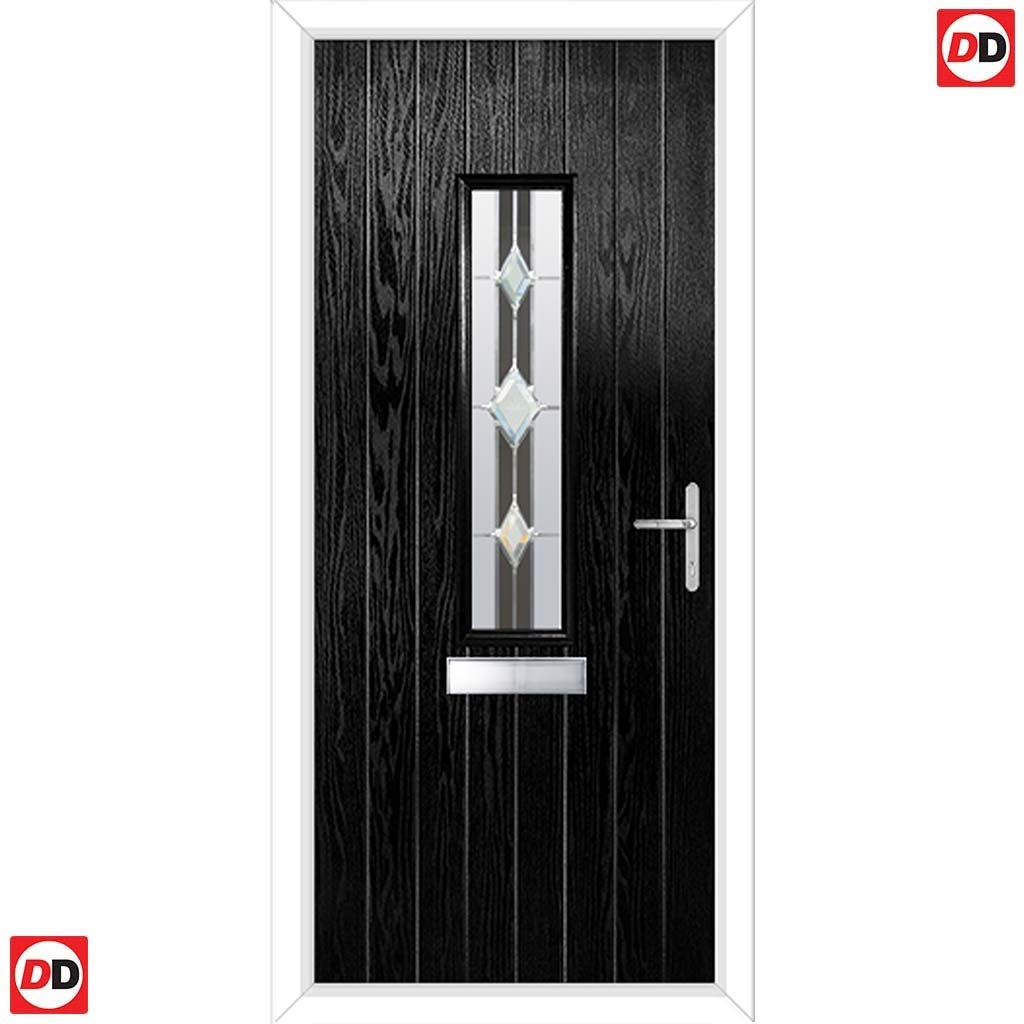 Cottage Style Tortola 1 Composite Front Door Set with Jet Glass - Shown in Black
