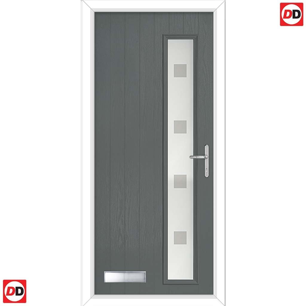 Cottage Style Uracco 1 Composite Front Door Set with Hnd Ellie Glass - Shown in Mouse Grey