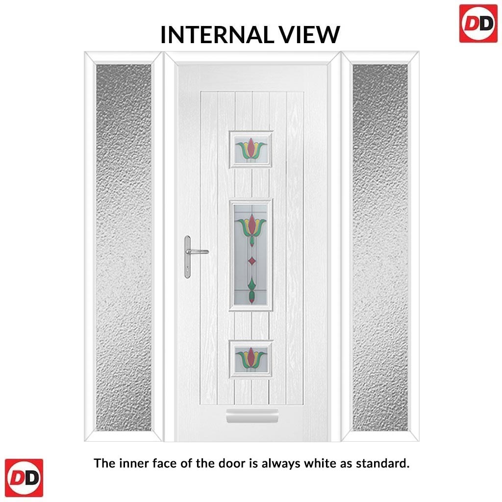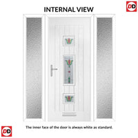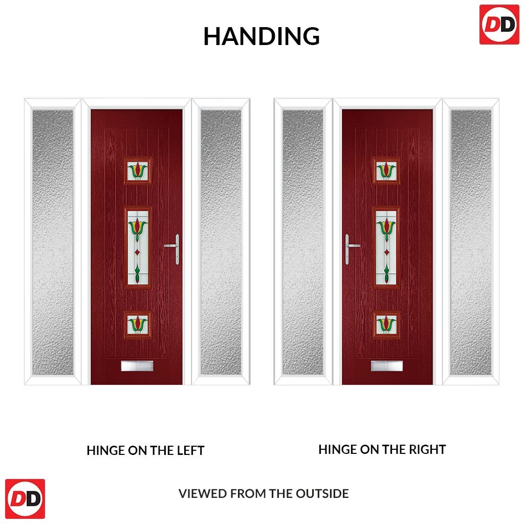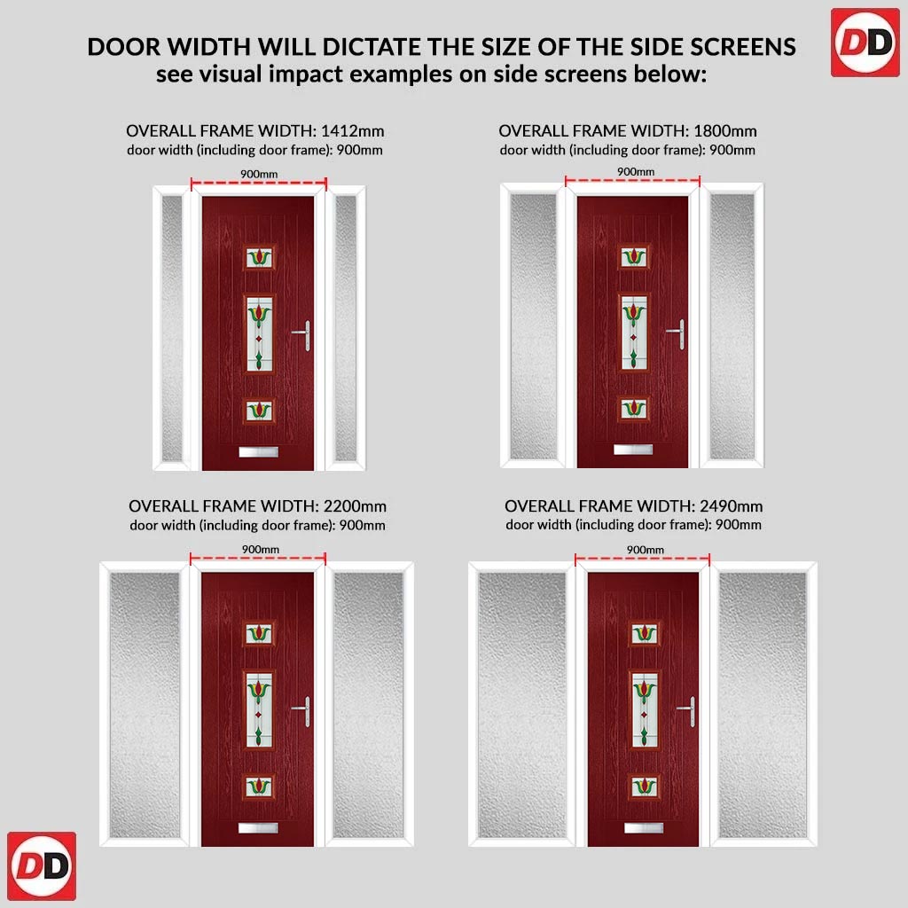 Country Style Firenza 3 Composite Front Door Set with Double Side Screen - Central Whitton Victoria Glass - Shown in Red