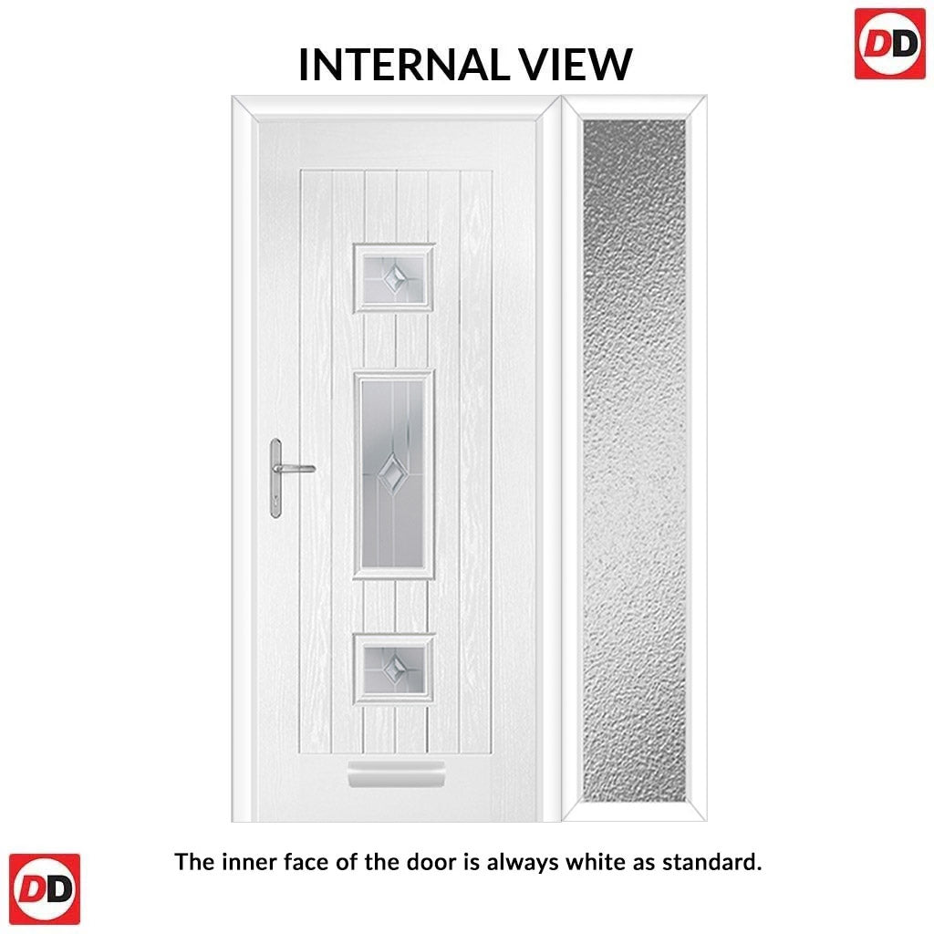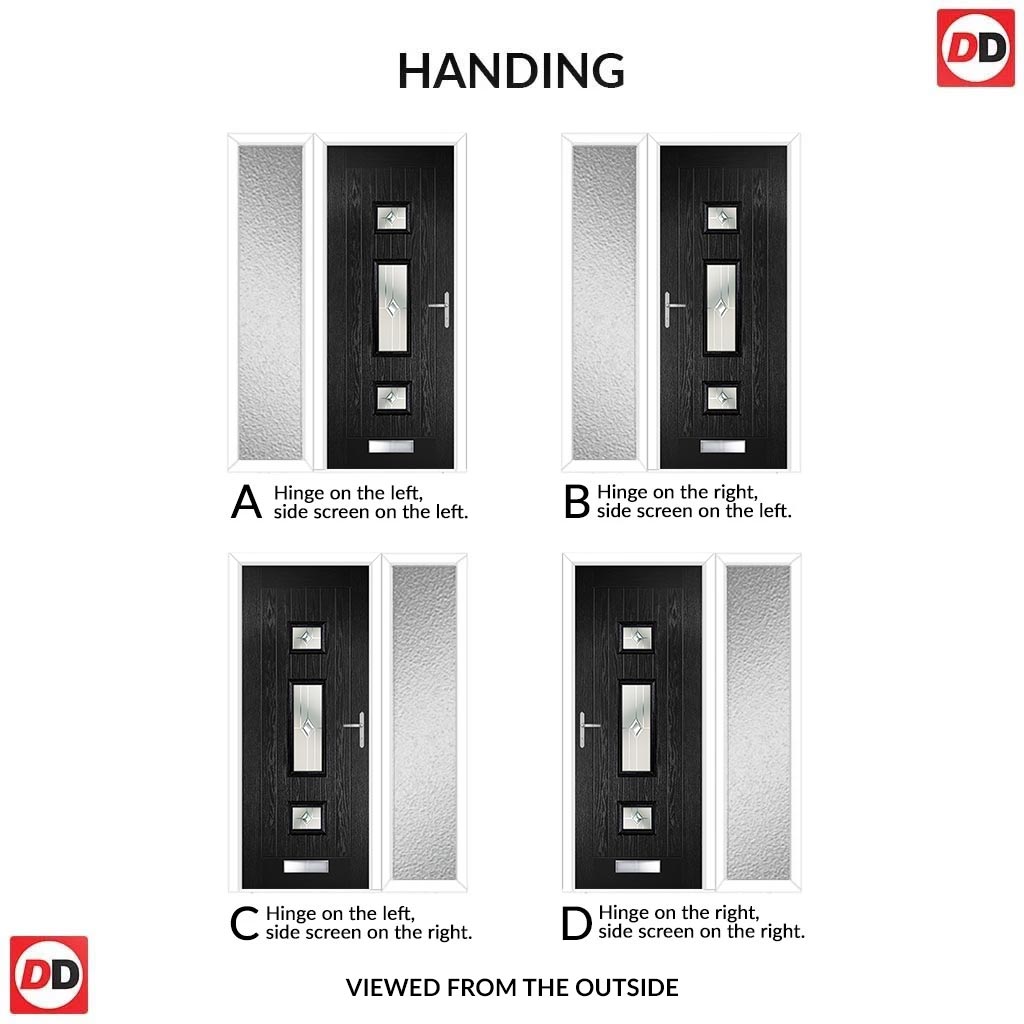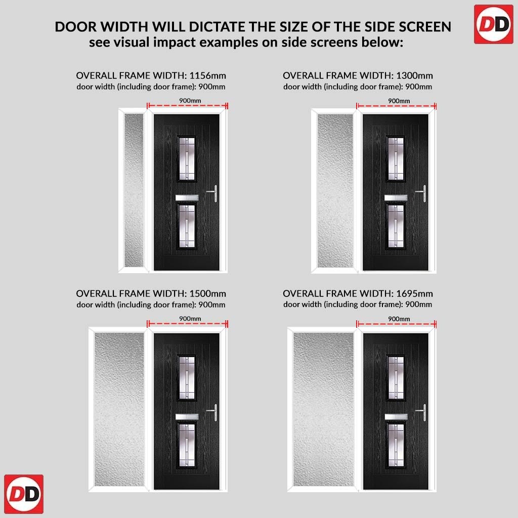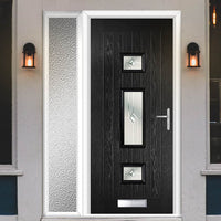 Country Style Firenza 3 Composite Front Door Set with Single Side Screen - Central Roma Glass - Shown in Black