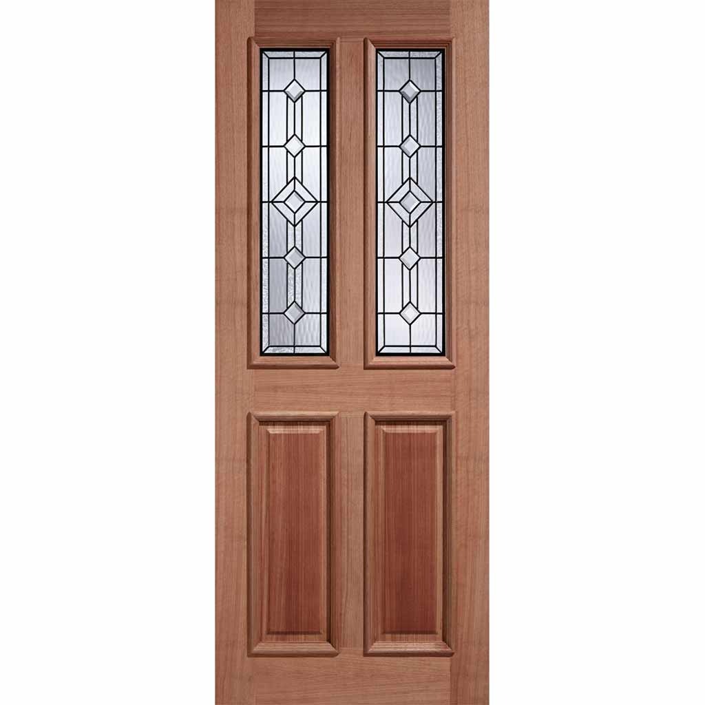 Derby Hardwood Front Door and Frame Set with Fittings - Leaded - Double Glazing