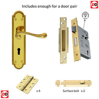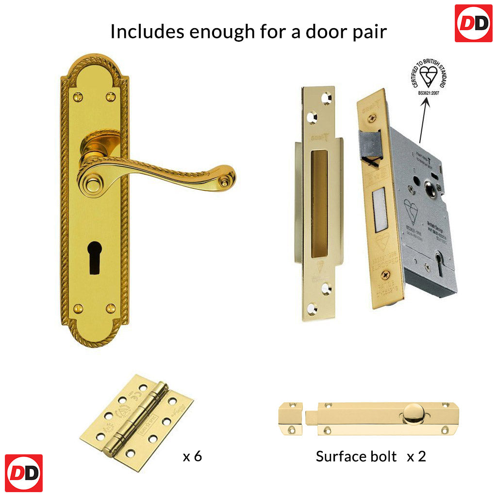 Double Door FG27 Georgian Suite Lever Lock Polished Brass - Combo Handle & Accessory Pack