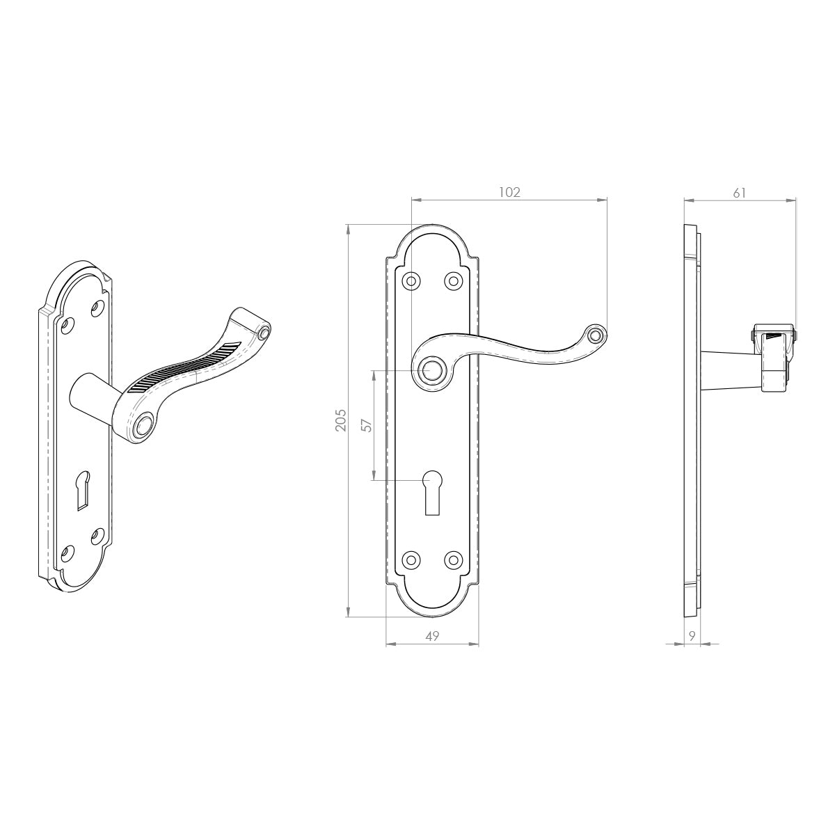 We include two pair of handles, a BS Kite Marked 5 Lever Security lock with rebate set (for where the door pair meets in the middle), 2 surface fix bolts and 6 complimentary hinges, the hinges will be the nearest available colour match for the handles as will the lock.