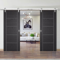 Double Sliding Door & Stainless Steel Barn Track - Laminate Vancouver Black Door - Prefinished