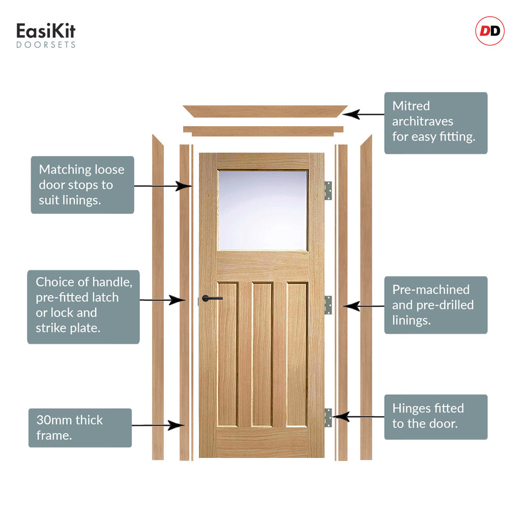EasiKit Internal Door and Frame Kit - 1930's Oak Internal Door - Frosted Glass