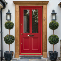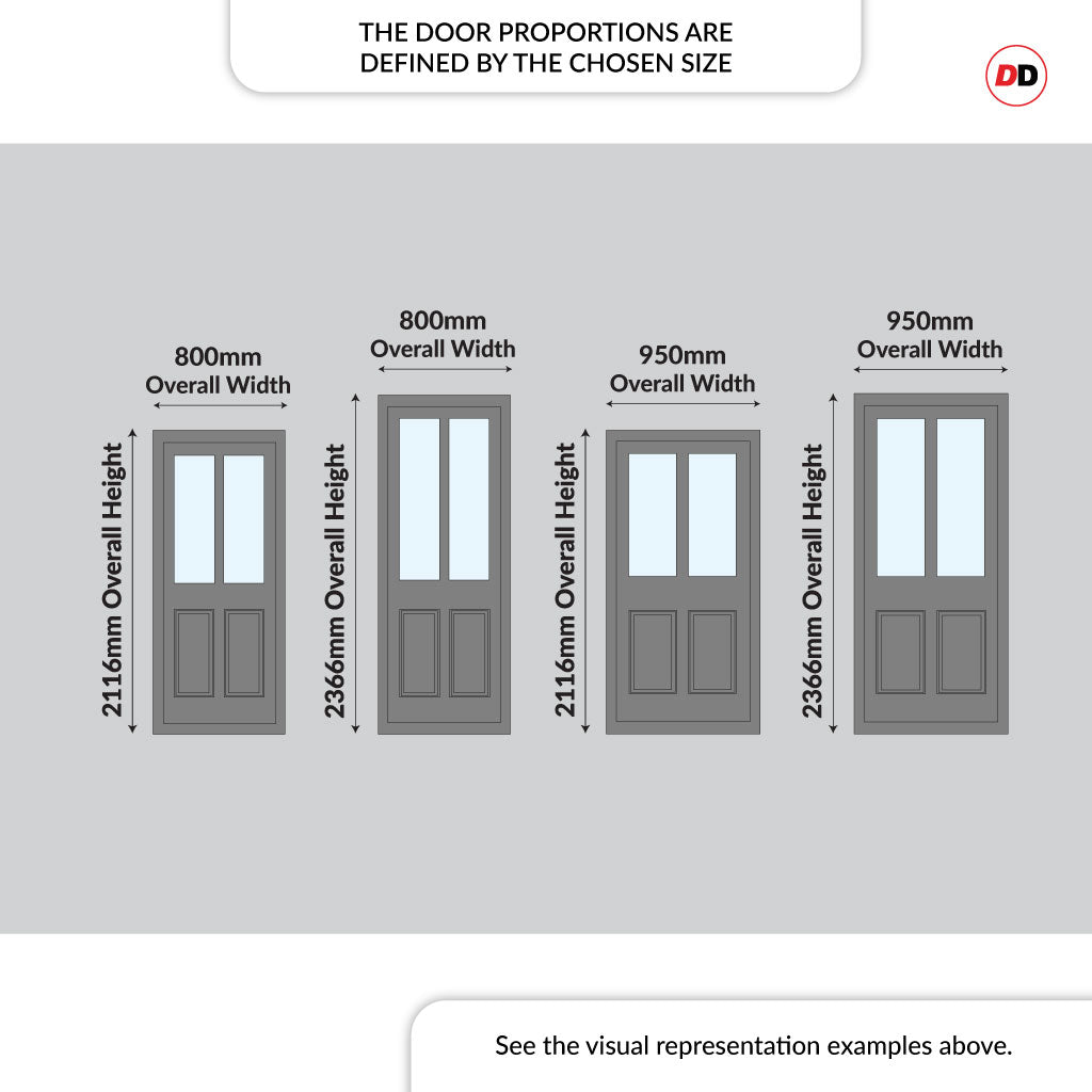 - The door is fitted with 28 mm double glazing. If any sidelights or transoms are included, these will feature 14mm double glazing. The door comes pre-glazed.