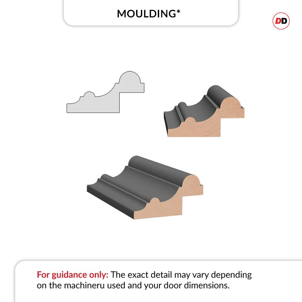 All glass profiles and beadings possess bevelled edges both inside and outside. The external panels will have projected mouldings, while the interior panel profile will showcase a bevelled design.