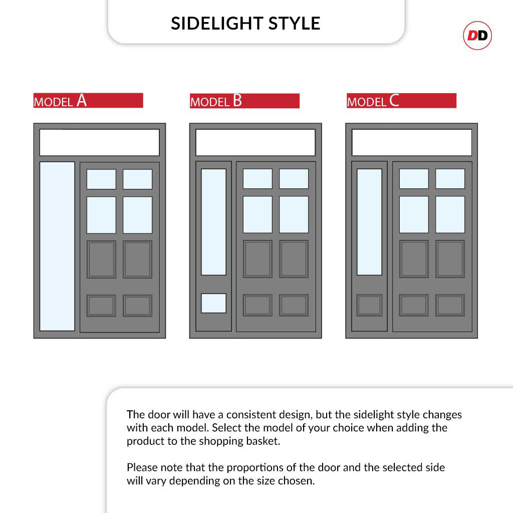 Need a new front door with side lights and top Light, but your sizes require a bespoke service? Look no further than DirectDoors.com, we have an extensive range of Traditional & Heritage Bespoke External Doors with a vast range of one, two sidelights or even a transom.