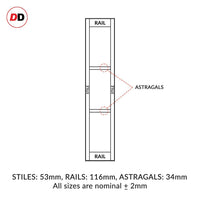 All Slimfold doors from DirectDoors Handmade Eco-Urban are 40mm thick, rail breadths are 120mm, stile breadths are 55mm, astragals are 34x40mm.All dimensions and thicknesses are +/- 2mm.