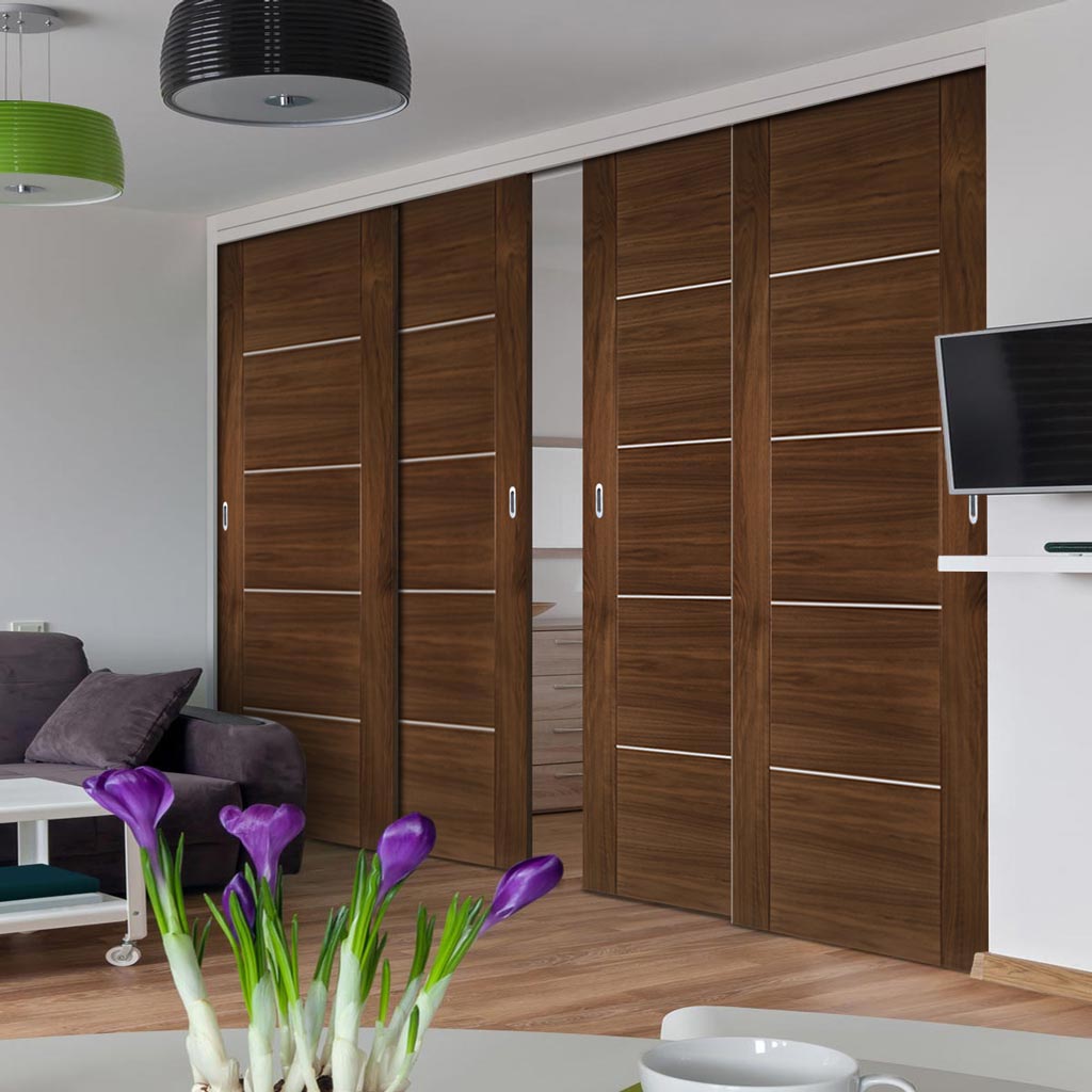 Pass-Easi Four Sliding Doors and Frame Kit - Valencia Prefinished Walnut Door