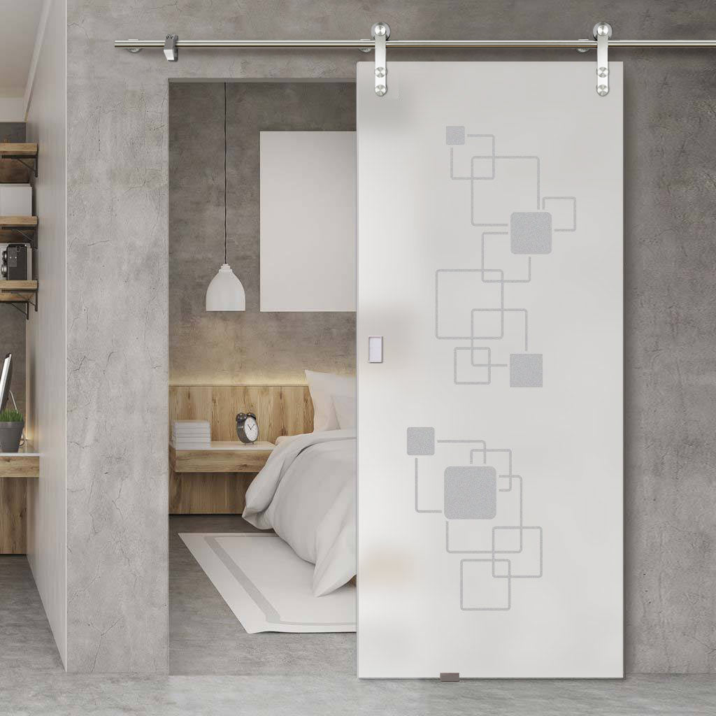 Single Glass Sliding Door - Solaris Tubular Stainless Steel Sliding Track & Geometric Pattern 8mm Obscure Glass - Obscure Printed Design