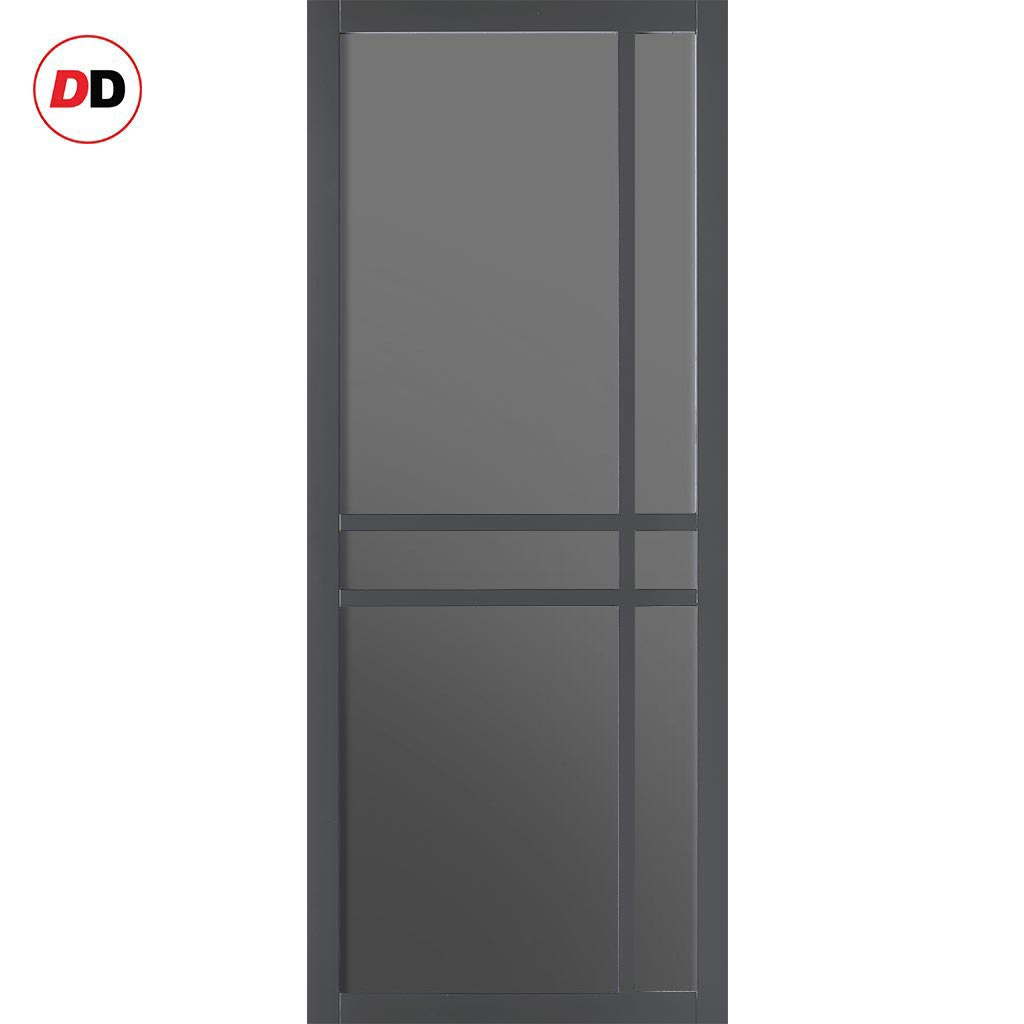 Glasgow 6 Pane Solid Wood Internal Door Pair UK Made DD6314 - Tinted Glass - Eco-Urban® Stormy Grey Premium Primed